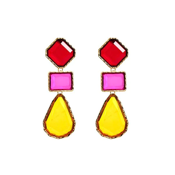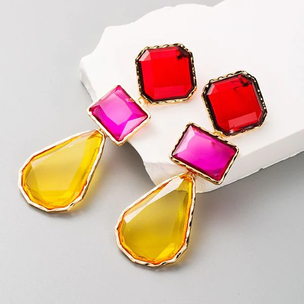 1 Pair Classic Style Geometric Inlay Alloy Artificial Gemstones Drop Earrings