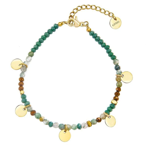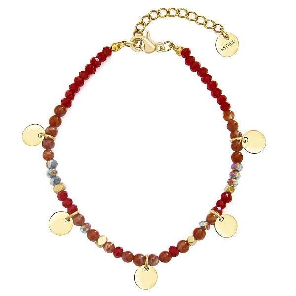 Colorful handmade bead small disc gold-plated stainless steel bracelet