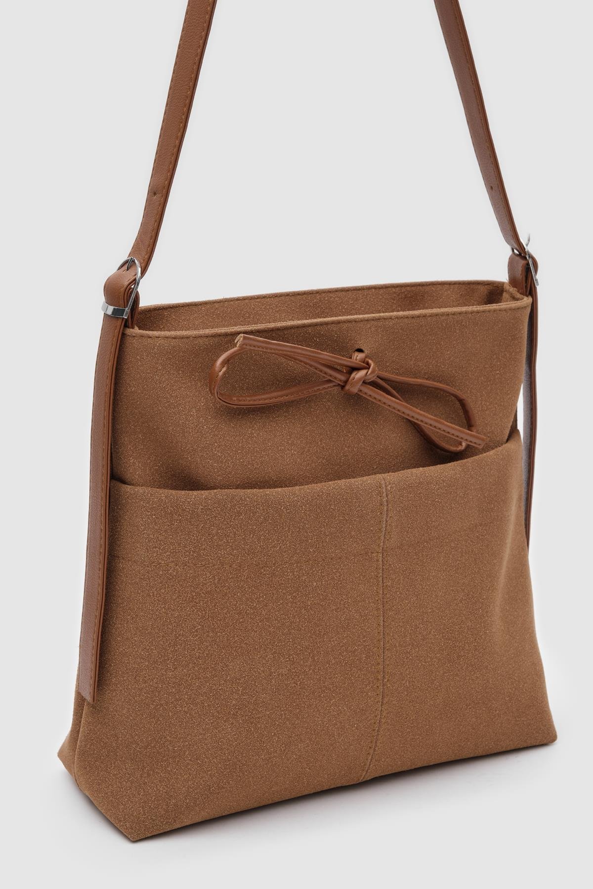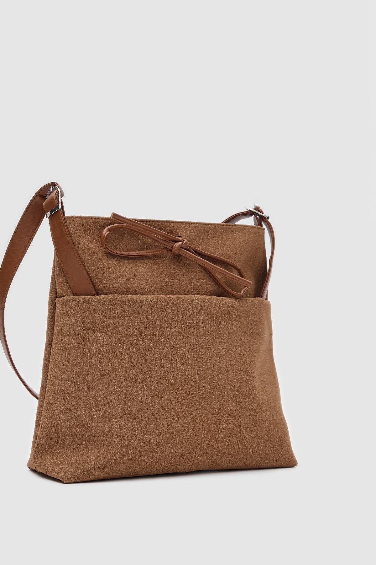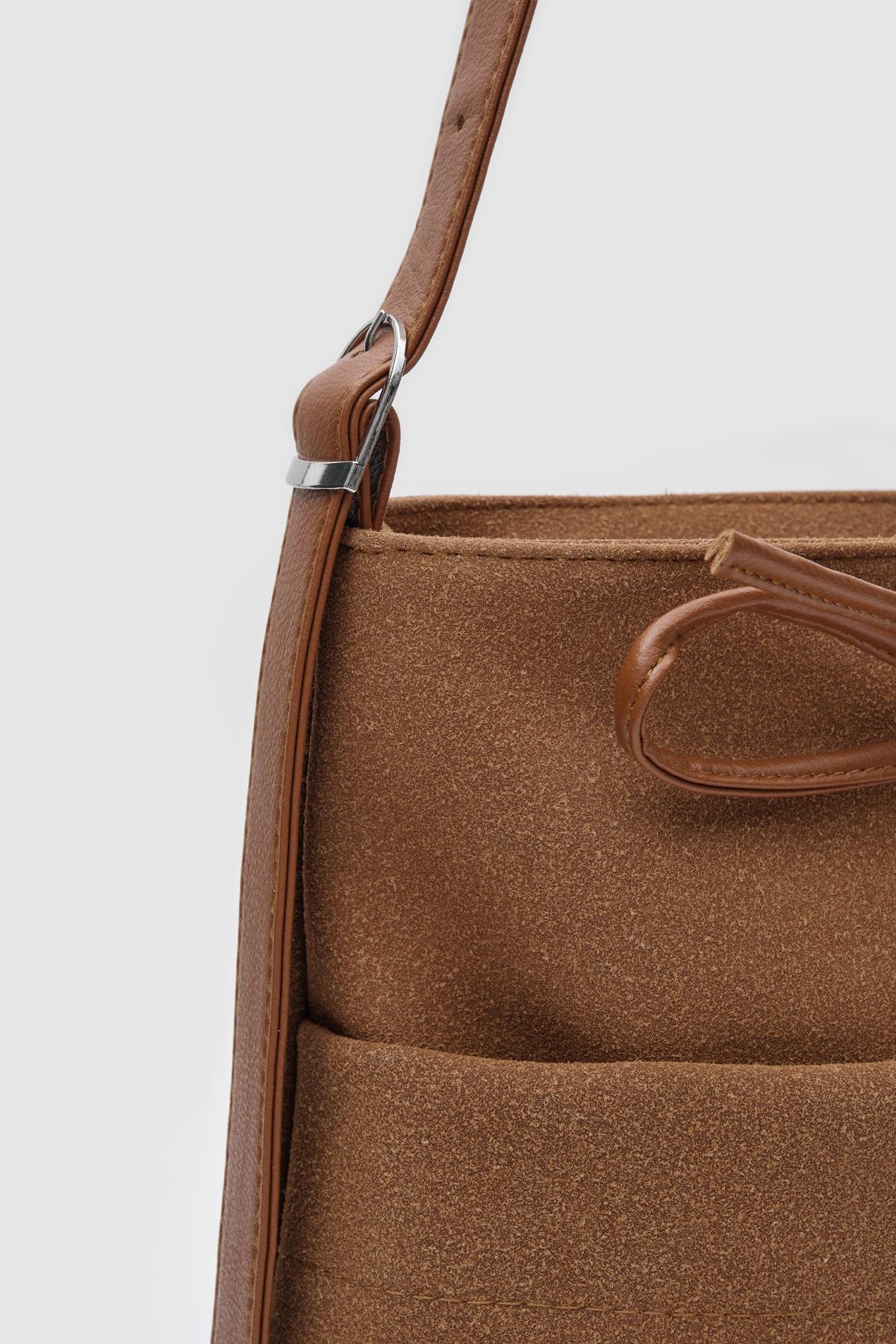 Elegant Brown Faux Suede Shoulder Bag